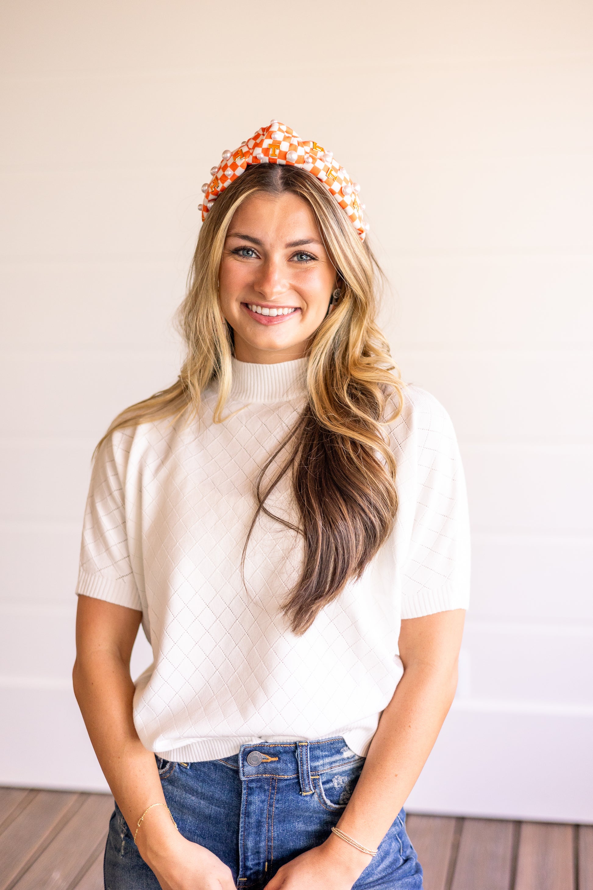 Orange and White cherckered Headband